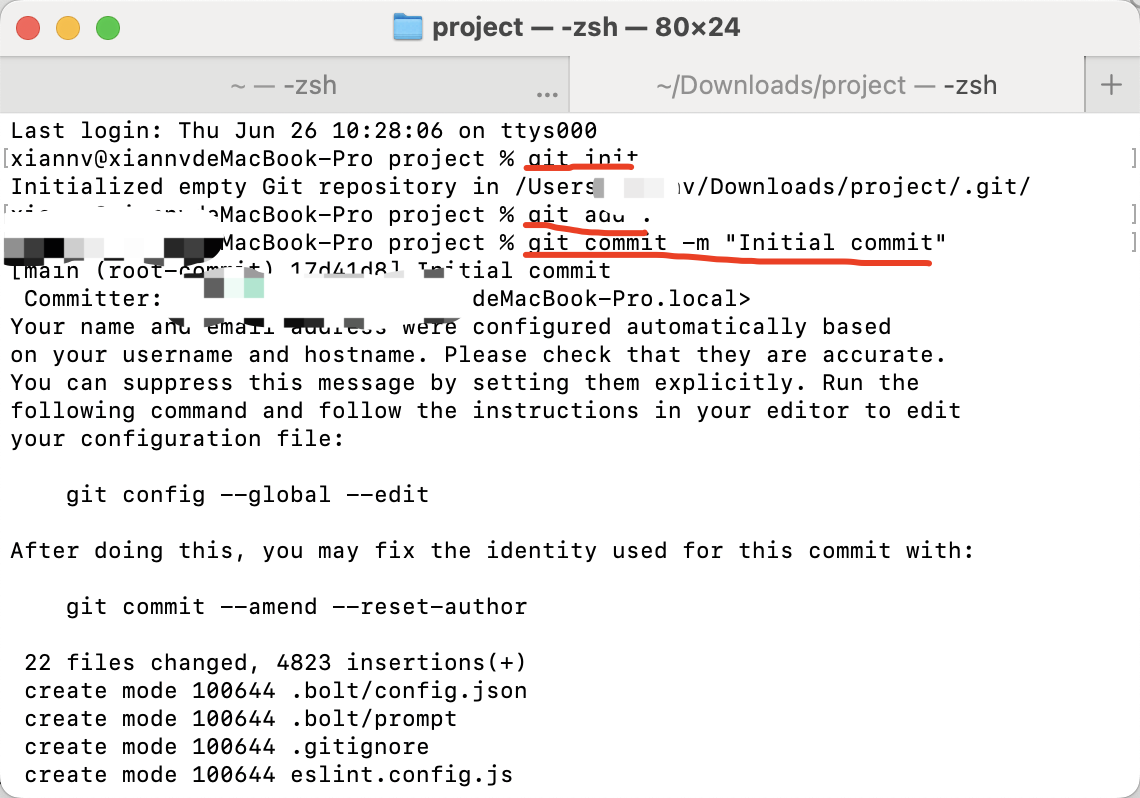 cd命令,再次进入到你的项目文件夹。依次复制、粘贴并执行以下两个命令: