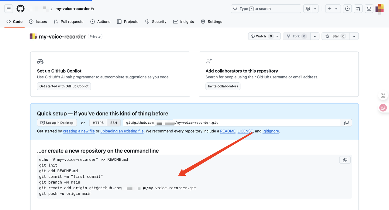 - 结果: 创建成功后,你会看到一个页面,上面有一些指令,最关键的是一个以