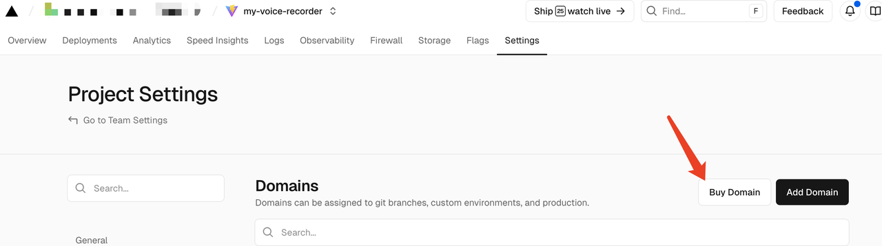 进入Vercel项目后台。