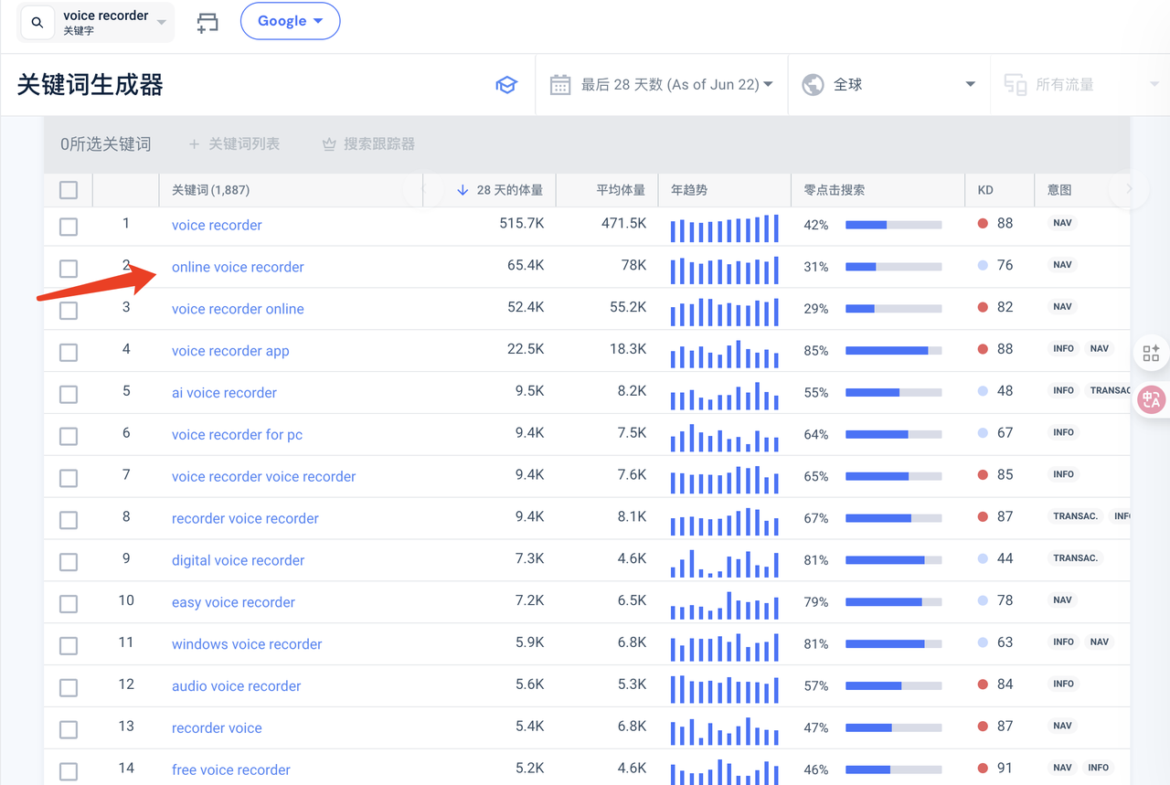 比如,我按照之前教的方法,找到个好的需求,比如对应的关键词是voice recorder。