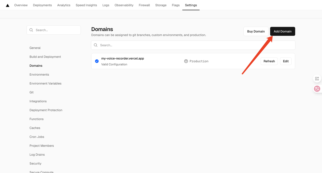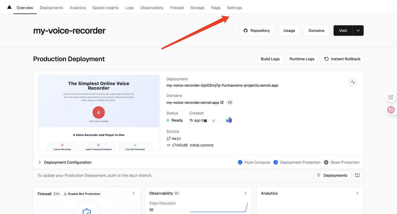 对于一个已经部署在Vercel上的项目,开启它极其简单,通常只需要一次点击。