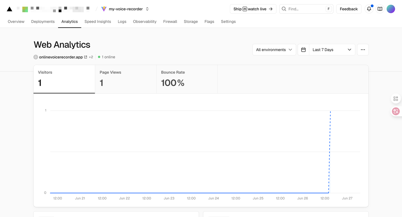 我们需要工具用来监控网站的性能和健康度,以及用来分析用户的来源和行为。这里我介绍一下Vercel Analytics和Google Analytics。