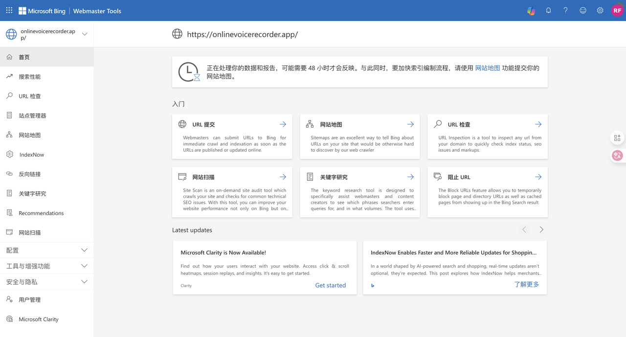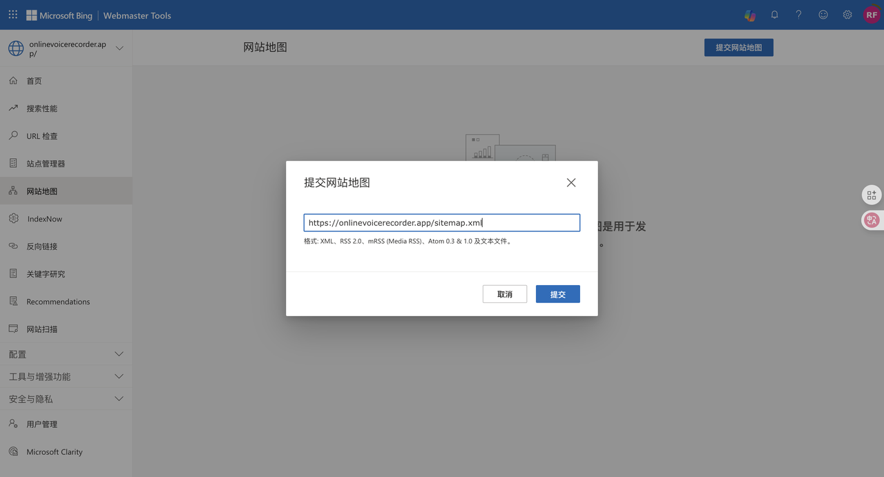 提交bing webmaster后台