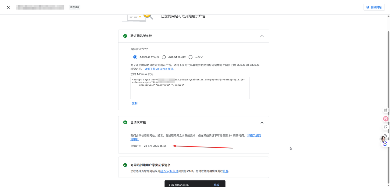 动作: 当网站有了一些基础内容和初始流量后,去申请Google AdSense
