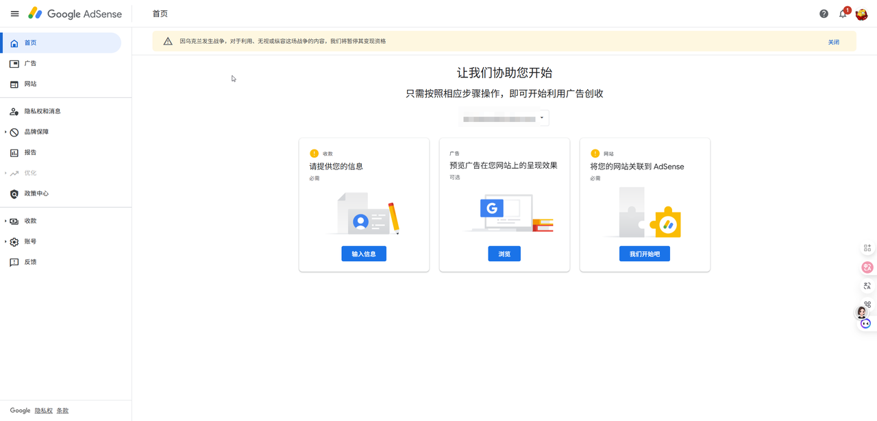 申请Google AdSense: