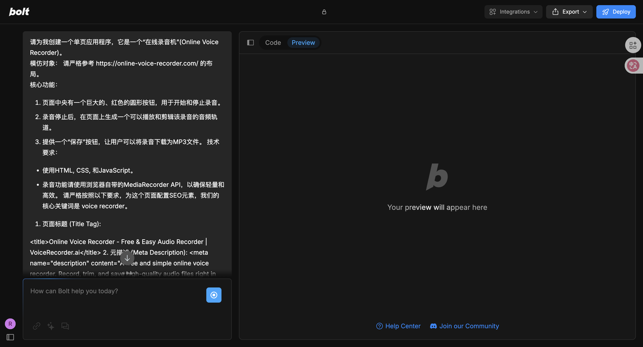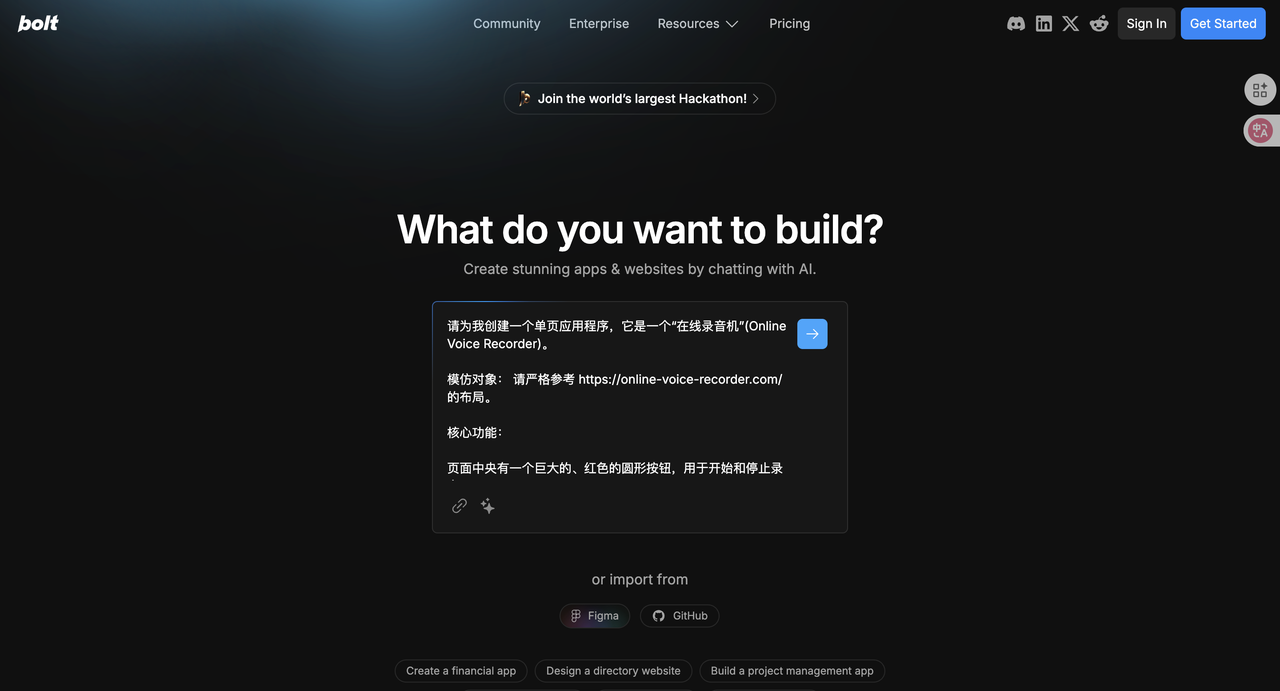 Ok,把刚才gemini给我们的提示词发给bolt.new