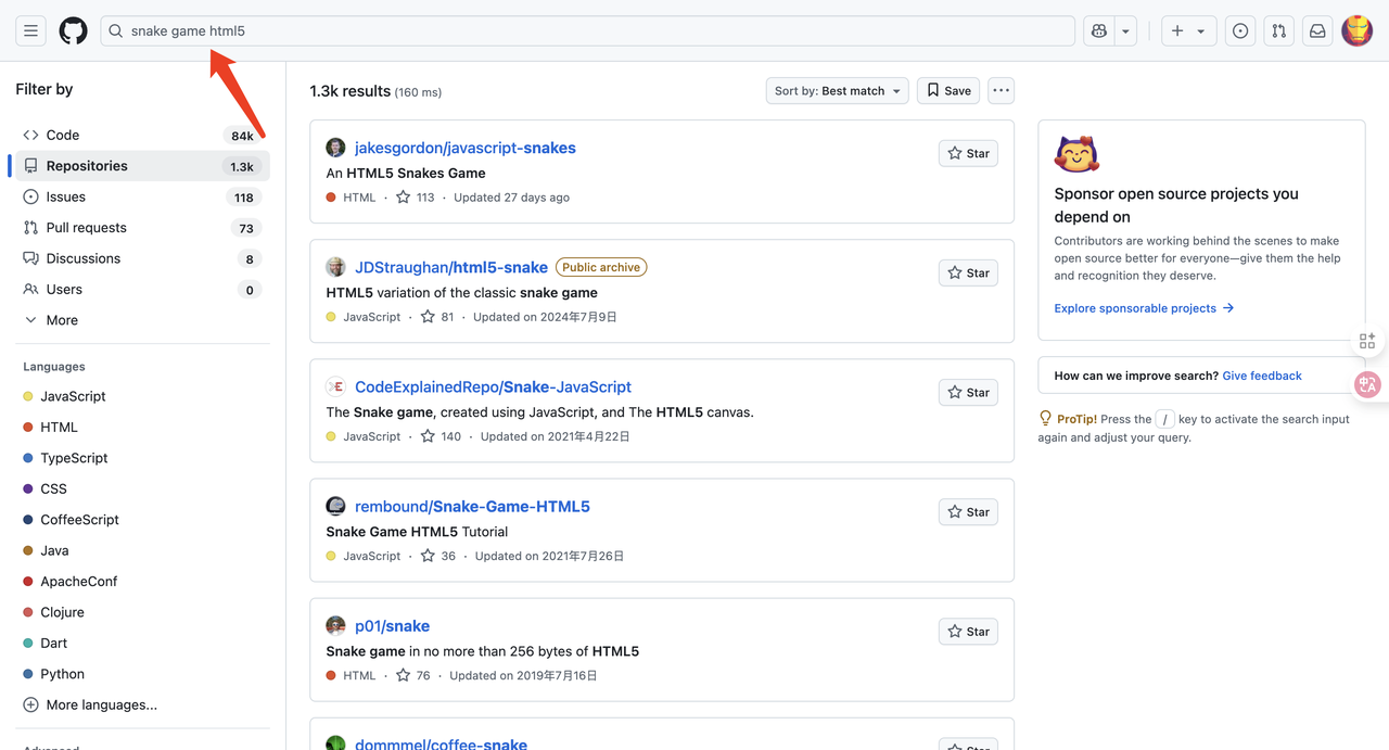 正确的思路: 立刻去GitHub搜索“snake game”或“HTML5 games”。你会找到大量开源的游戏成品。你需要做的,是检查它们的开源协议(License)是否允许商用。