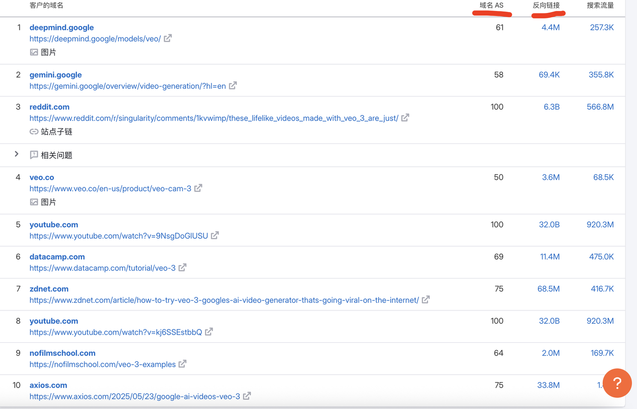 做什么: 看搜索结果前10名的网站,它们的域名评级(DR/AS)是多少?外链数量和质量如何?